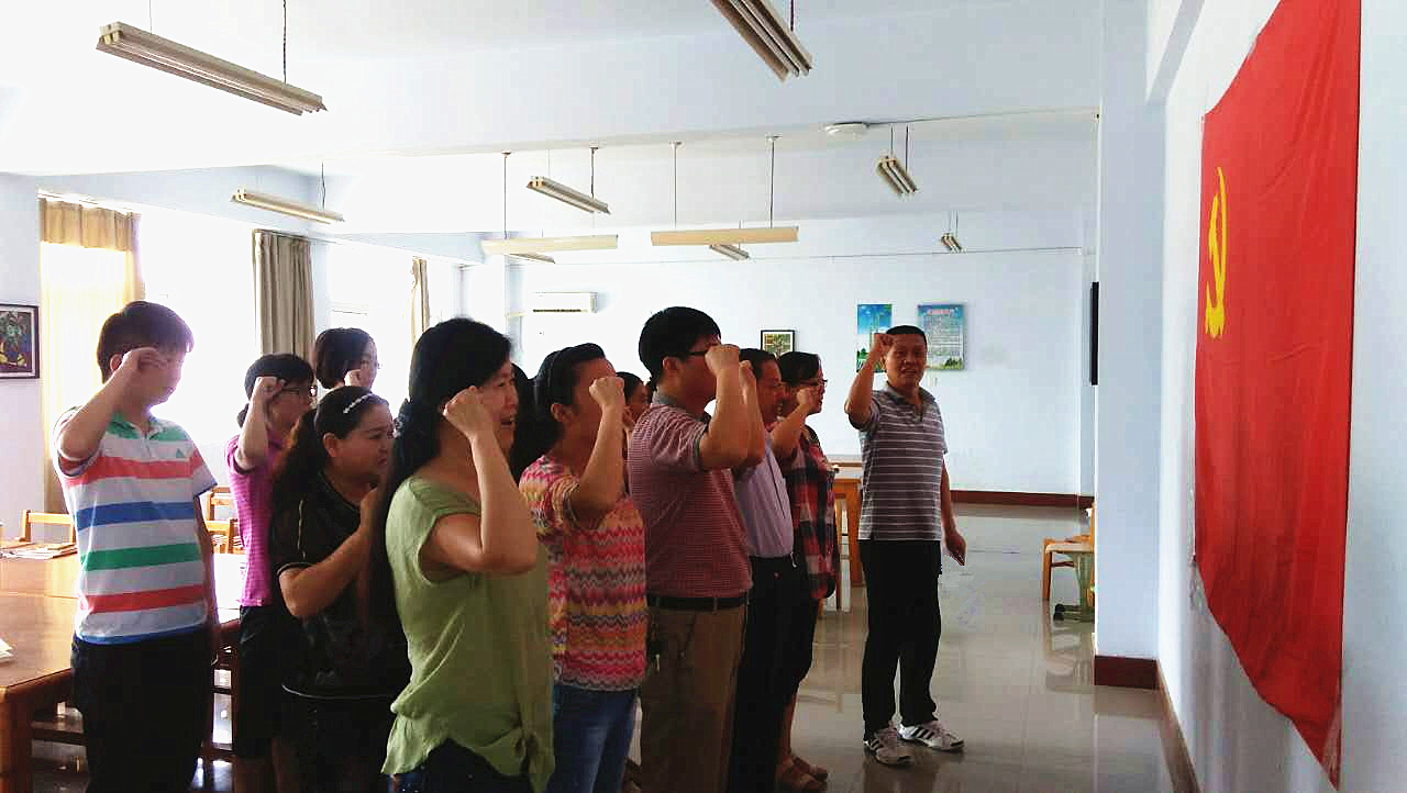 为扎实推进“两学一做”学习教育活动、喜迎建党95周年,6月24日下午,图书馆直属党支部在图书馆会议室组织全体党员重温入党誓词。